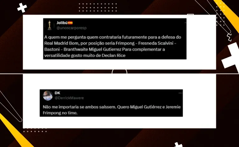 Outro nome também segue na lista dos dirigentes. O Real Madrid continua buscando posições e Jeremie Frimpong, lateral holandês do Bayer Leverkusen, é uma das opções.