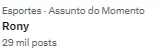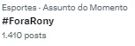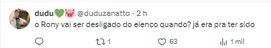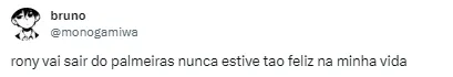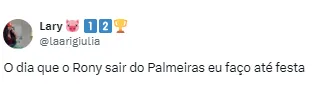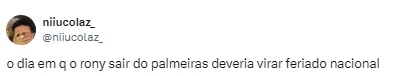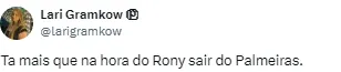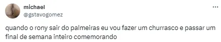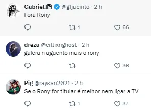 Diante da possibilidade, o assunto foi um dos mais comentados no X, o antigo Twitter. A torcida se manifestou, com a maioria concordando de que o jogador deve deixar o clube. A hashtag “ForaRony” também foi um dos assuntos.
