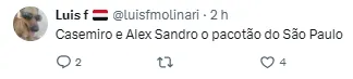 “O que não está decidido é se de fato vai voltar ao Brasil. Caso isso aconteça, São Paulo está forte. O Zubeldía gostou da ideia do Alex Sandro porque ele também pode fazer função de terceiro zagueiro”, complementou o jornalista.