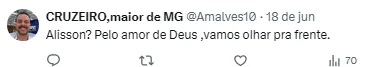 “Tenho um carinho enorme pelo Cruzeiro. Foi um clube que vivi praticamente minha vida, mas até mim não chegou nada. Estou feliz no São Paulo e grato ao clube por tudo que fizeram por mim”, disse Alisson na zona mista do Morumbis.