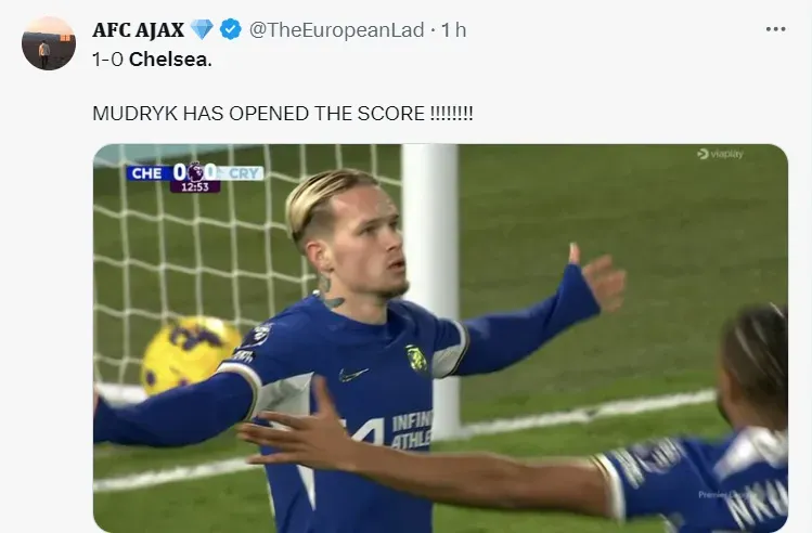 Em casa, pela Premier League, o Chelsea recebeu o Palace e, apesar do jogo duro dos rivais, venceu a partida por 2 a 1. Camisa 10 e uma das contratações da história dos Blues, Mudryk foi às redes.