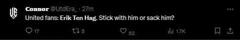 Depois o jogo, com um microfone, Erik ten Hag agradeceu todo o suporte dos torcedores do Manchester United, e confessou que a atual temporada não é das melhores da equipe.