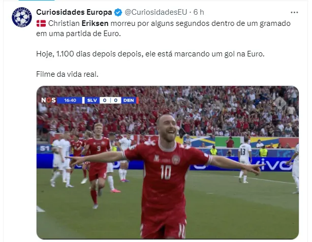 “Acho que são ótimas recordações, embora claro que tudo tenha começado de uma forma muito negativa e pessimista, mas depois tudo melhorou”. Explicou Eriksen, que já defendeu a sua seleção em uma Euro e uma Copa do Mundo.