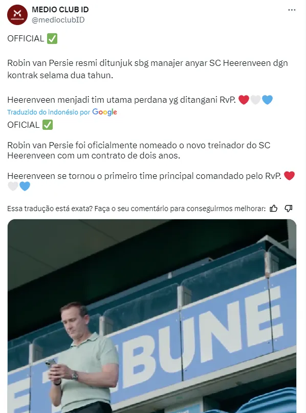 “Embora Robin esteja no início de sua carreira como técnico, ele nos convenceu imediatamente. Ele é ambicioso, apaixonado e ansioso por aprender. Acho que ele sabe como entusiasmar e motivar um elenco de jogadores”, disse Ferry de Haan em comunicado do Heereveen.