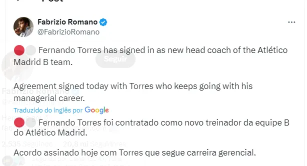 “Estou em casa e sinto uma enorme responsabilidade desde que decidi enfrentar esta nova etapa. Foram três anos de aprendizado constante e, para mim, esse passo é muito importante. Quero ser ambicioso para fazer as coisas melhores a cada dia.”, continuou Torres.