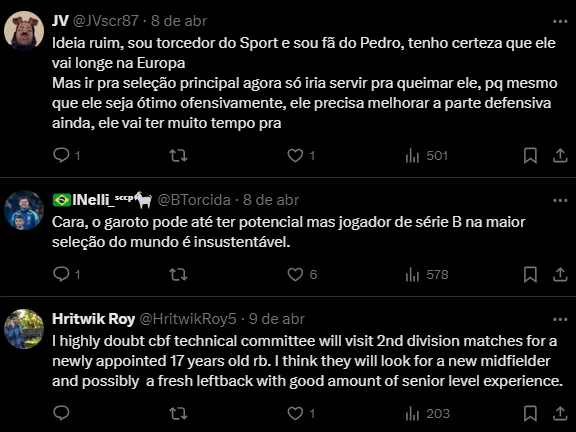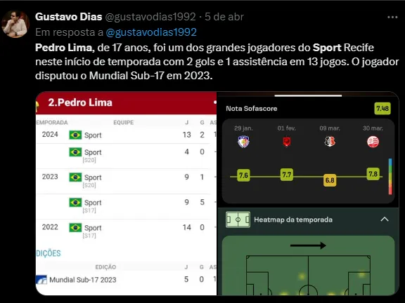 Valores por Pedro Lima, do Sport