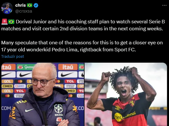 Pedro Lima é a bola da vez. Aos 17 anos, o jovem já é titular e campeão pelo Sport Recife. Vale lembrar que um lateral é buscado há tempos para ser preparado e chegar pronto nas mãos de Guardiola.