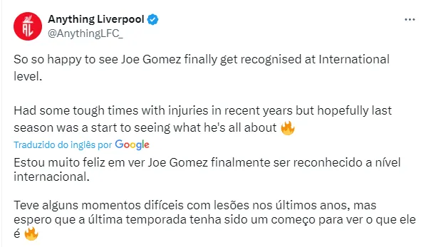 Porém, o Liverpool não tem em seus planos perder o zagueiro que mais atuou na temporada. Os Reds deram a Gomez um contrato de cinco anos em 2022. O vínculo para ter o zagueiro dura até 2027.