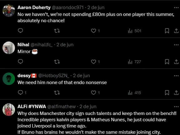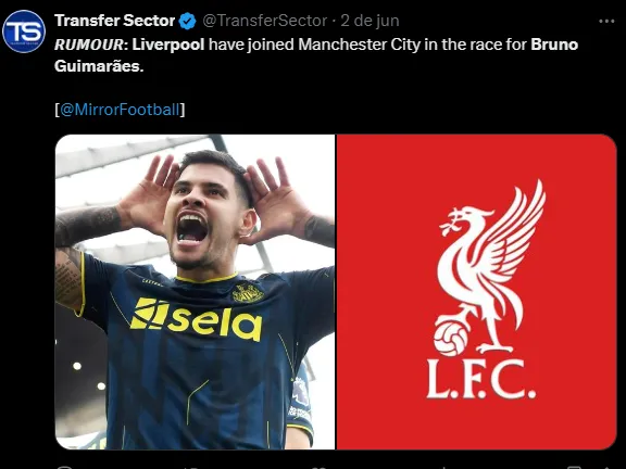 O Liverpool estaria interessado em Bruno Guimarães e Anthony Gordon. A informação do Givem Sport dá conta que ambos podem custar até 175 milhões de libras (mais de R$ 1 bilhão na cotação atual).