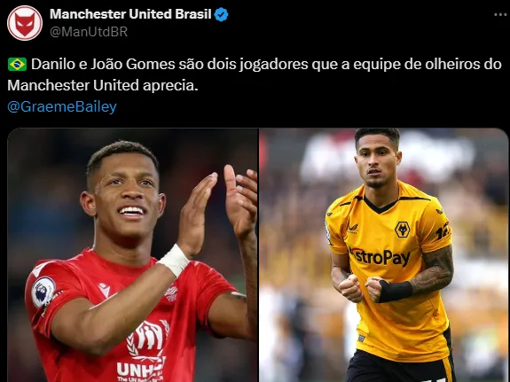 O Manchester United não esconde o desejo de fechar com João Gomes, ex-Flamengo, ou Danilo, com ótima passagem no Palmeiras e destaque do Nottingham Forest.