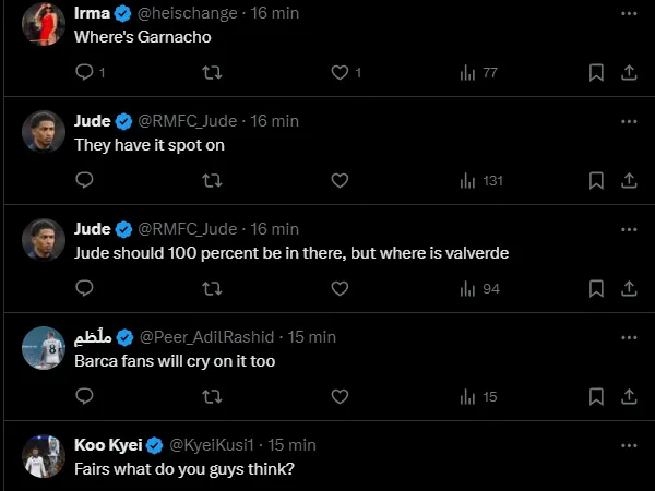 Torcedores comentaram sentindo falta de Lunin na lista. Harry Kane, mesmo sem títulos, e Lautaro Martínez, importante na conquista da Inter de Milão na Série A, também foram mencionados na web.