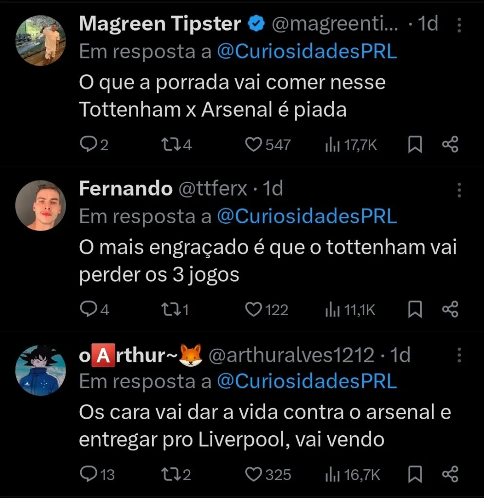 É distante imaginar que o Tottenham pode vencer a Premier League caso ganhe as três partidas citadas. No entanto, é preciso que Arsenal, Liverpool e Manchester City estejam atentos, visto que os Spurs aparecem com possibilidade de arrancar pontos na briga pelo troféu.