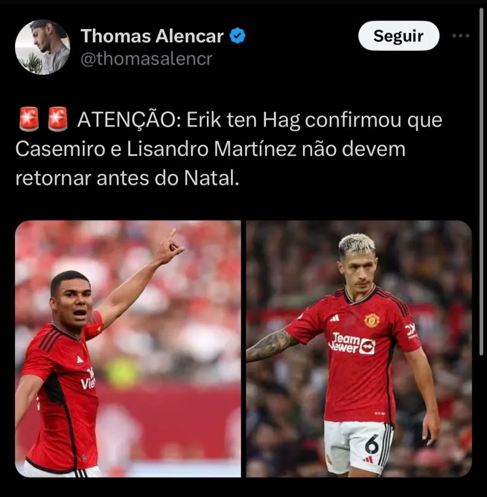 O Manchester United pode vender Casemiro na próxima janela de transferências em janeiro. O Al-Nassr, de Cristiano Ronaldo, é um dos interessados na contratação.