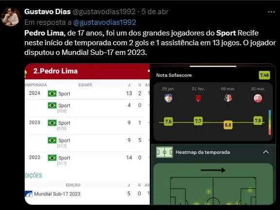 Pedro Lima é a bola da vez. Aos 17 anos, o jovem já é titular e campeão pelo Sport Recife. Vale lembrar que um lateral é buscado há tempos para ser preparado e chegar pronto nas mãos de Guardiola.
