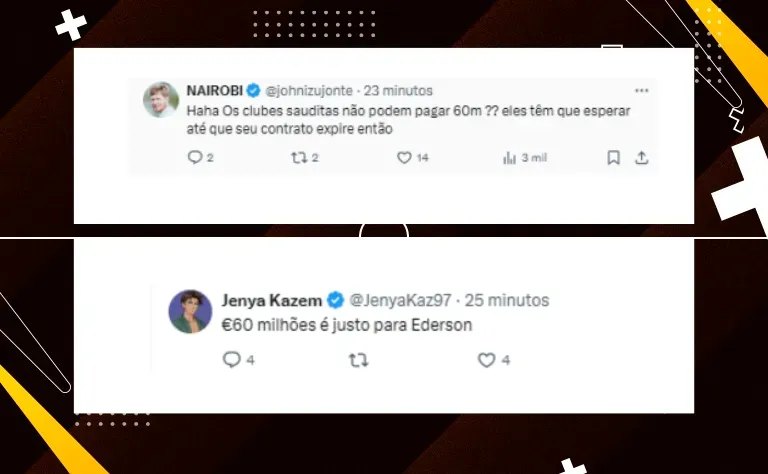 Enquanto o Al-Nassr ofereceria a princípio cerca de € 30 milhões, que foi rejeitada, o City está firme e não aceita menos do que € 50 milhões por Ederson, ainda de acordo com o portal.