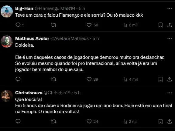 Rodinei saiu do Flamengo em um momento que a Nação estava gostando muito do futebol do lateral-direito responsável por fazer o gol do título da Copa do Brasil de 2022.