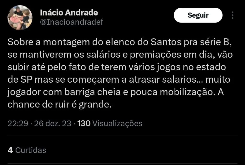 Você acredita na subida do Santos?