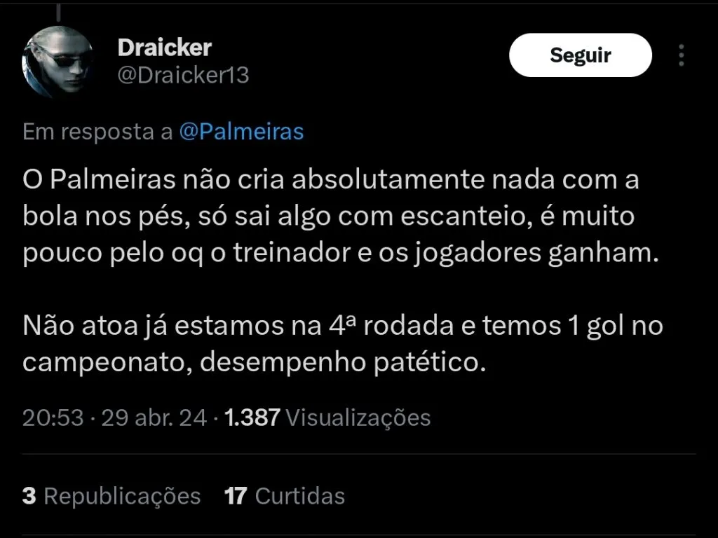 Você concorda que o desempenho do Palmeiras é decepcionante?
