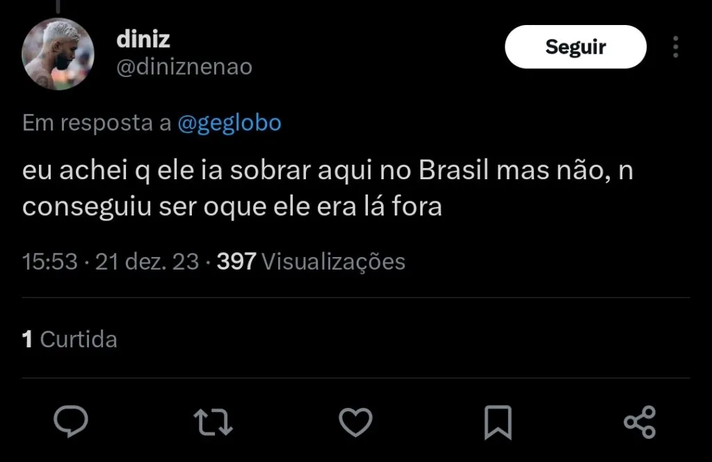 O fato irritou a torcida do Furacão, que protestou bastante nos comentários da publicação feita pelo “Rei”. A falta de respeito pelos clubes foi um dos principais destaques do jogador em terras brasileiras, isto é se não for o maior dos seus feitos.