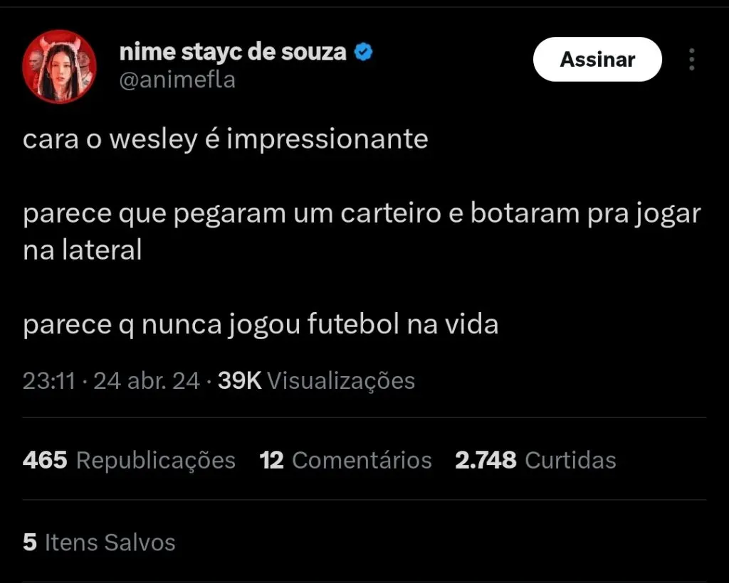 Apesar de ser bastante jovem e ter potencial para evolução, Wesley mostra que não é um jogador com nível para o Flamengo.