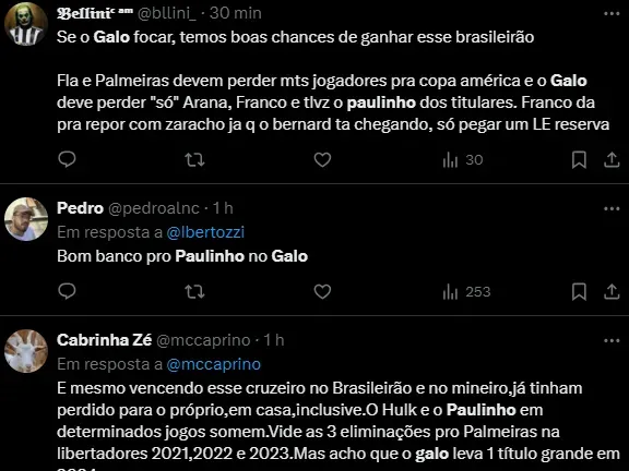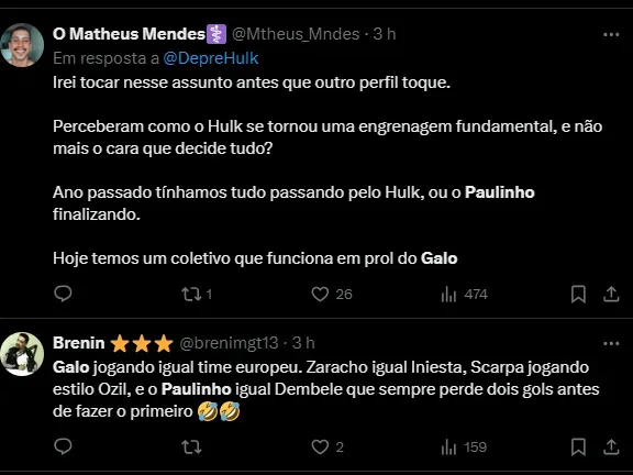 Já na Libertadores, o Atlético Mineiro surpreende na fase de grupos e é o líder do Grupo G com 100% de aproveitamento nos três confrontos disputados até o momento.