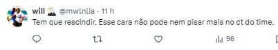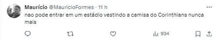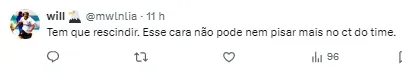 Com a atitude, a torcida do Corinthians se manifestou nas redes sociais, pedindo a saída do jogador (SIC). Confira mais abaixo.