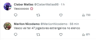Vale lembrar que, de acordo com o jornalista Lucas Pedrosa, o Vasco busca um centroavante reserva para Pablo Vegetti.