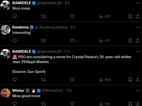 Com 16 gols, sendo 13 na Premier League, e quatro assistências em 38 jogos disputados na temporada 2023/24, o atacante Jean-Philippe Mateta é alvo do PSG para a próxima época.