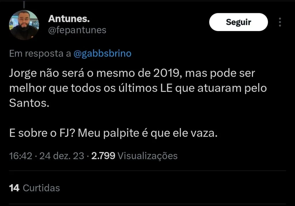 O lateral esquerdo Jorge chegou com uma grande expectativa a equipe do Palmeiras na última temporada, mas acabou não tendo um bom desempenho. Ele foi emprestado para o Fluminense em 2023, e também não atuou pelo clube carioca.