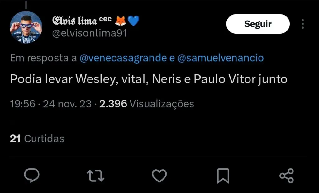 A equipe do Cruzeiro vem passando por uma péssima temporada após retornar a primeira divisão. O clube tem brigado contra o rebaixamento no Brasileirão, e preocupa bastante a torcida.