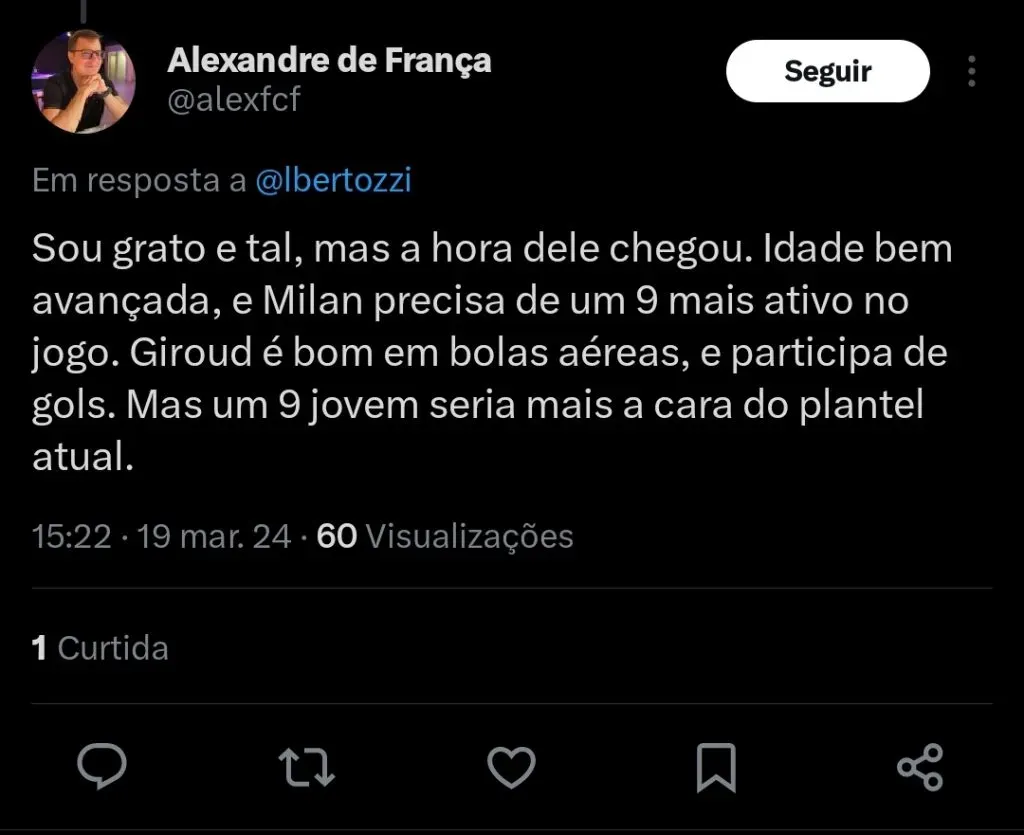 O atacante Olivier Giroud foi uma peça importante nos títulos recentes do Milan, mas acabou perdendo espaço na equipe.