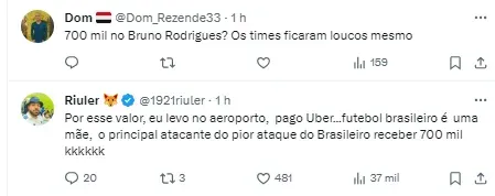 A oferta feita pelo clube está avaliada em € 4,8 milhões (R$ 26 milhões) pela totalidade dos direitos econômicos de Bruno Rodrigues. O Tombense teria direito a 67% do valor, que seria € 3,2 milhões (cerca de R$ 17,3 milhões) e o Cruzeiro 33%, da negociação, cerca de € 1,5 milhão (R$ 8,5). Os números da oferta foram trazidos inicialmente pelo jornalista André Hernan.