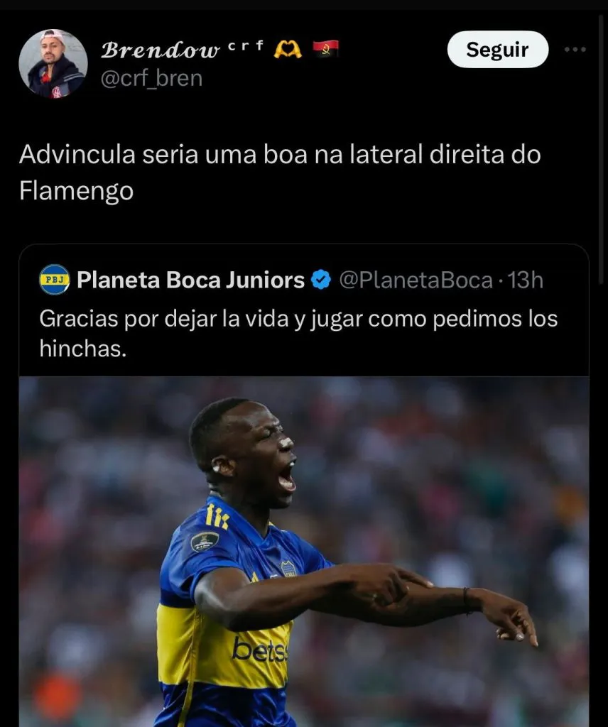 O lateral peruano Luis Advíncula, do Boca Juniors, caiu nas graças dos torcedores rivais do Fluminense, e já é pedido por alguns torcedores para a próxima temporada.