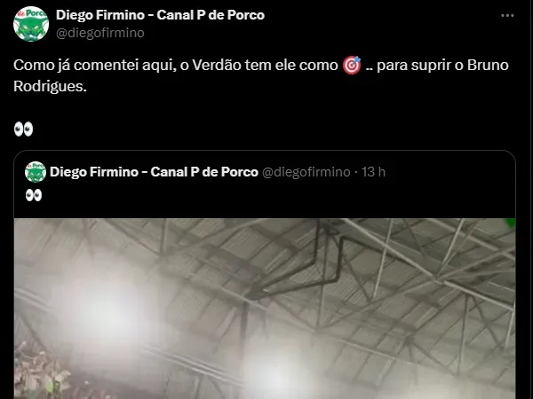 Diego Firmino é um dos comunicados que afirmam que o jovem está no radar da diretoria do Verdão para substituir Bruno Rodrigues e há quem diga que é bem o perfil que o técnico Abel Ferreira gosta.