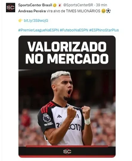 O mercado de transferências está agitado e, clubes da Arábia Saudita estão demonstrando interesse na contratação do talentoso meio-campista brasileiro Andreas Pereira, atualmente no Fulham.