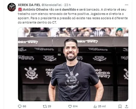 Assim, António Oliveira enfrenta uma crescente pressão para melhorar o desempenho da equipe, enquanto a diretoria do Corinthians é cobrada por resultados concretos em um período relativamente curto de gestão.