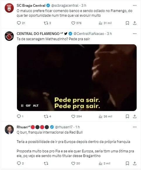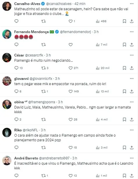 A decisão de Matheuzinho causou revolta entre os torcedores do Flamengo, especialmente considerando que o jogador perdeu espaço durante a temporada de 2023, terminando como a terceira opção para a posição.