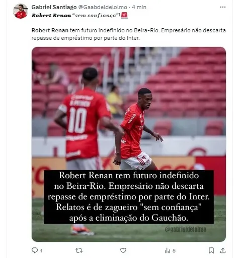 Além disso, sua ausência em campo no confronto contra o Belgrano, válido pela Sul-Americana, demonstra a falta de confiança do treinador Coudet no jogador, reforçando as especulações sobre seu futuro no Internacional.