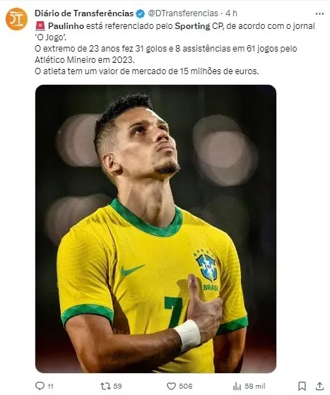 Após uma temporada brilhante em 2023, onde Paulinho marcou 31 gols em 61 jogos pelo Atlético-MG, o atacante despertou o interesse do Sporting, que busca reforçar seu elenco com peças de destaque.