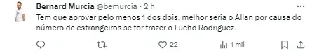 Porém, nos últimos dias dois nomes chamaram a atenção dos torcedores nas redes sociais: Allan e Cuellar. Segundo informações do jornalista Matheus Guimarães, do portal Lance! A dupla está aprovada pela diretoria de futebol e foi encaminhada à 777 Partners para a avaliação.
