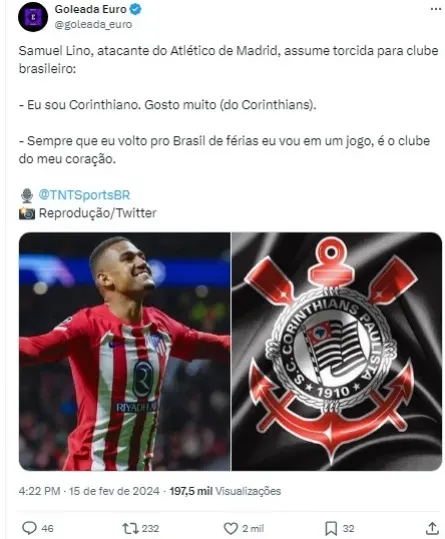 O atacante Samuel Lino, atualmente no Atlético de Madrid, revelou seu desejo de um dia vestir a camisa de um gigante do futebol brasileiro, clube pelo qual nutre grande paixão, durante uma entrevista ao TNT Sports.