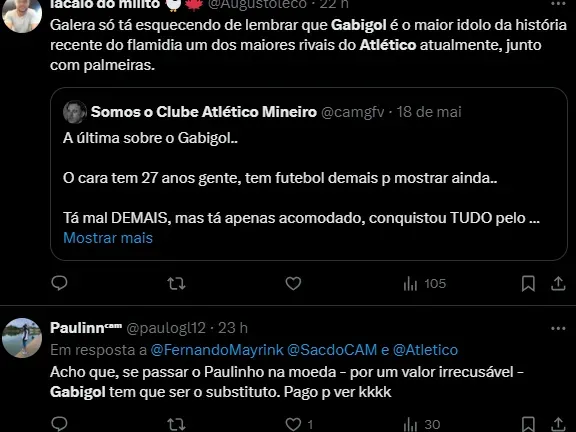 Através do Canal Eu Acredito, o comunicador conseguiu contato com uma pessoa que tem trânsito nos bastidores do Atlético-MG e não foi descartada a ideia de ter Gabigol no elenco.