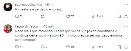 Na última segunda-feira o clube anunciou a saída do técnico Mano Menezes após falas polêmicas e o desempenho abaixo com a equipe chegando a quatro derrotas seguidas – ao todo até aqui são cinco.