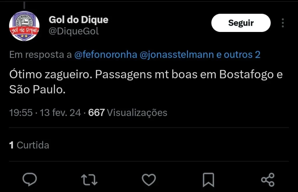 No momento, não existe uma proposta oficial, apenas algumas sondagens feitas pela equipe. A situação pode ter um avanço em breve, dependendo das informações coletadas pelo tricolor baiano.