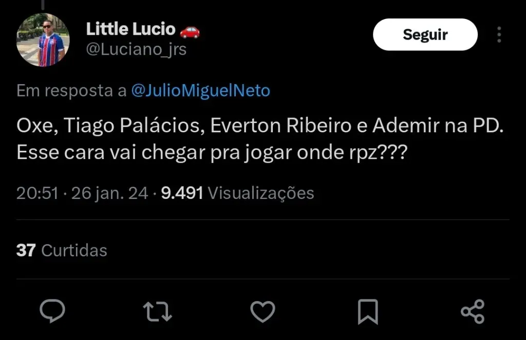 No momento, não existe uma proposta oficial por parte do tricolor baiano. Os dirigentes fizeram sondagens pelo brasileiro, afim de obter informações a respeito dos valores de uma possível transferência.