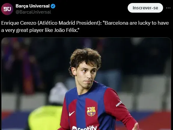 “É normal que João Félix queira ficar no Barcelona, que também quer que ele fique. Por isso, estamos todos muito contentes. O Barça está a ficar com um jogador magnífico”, disse o mandatário conforme publicado pelo jornal A Bola.