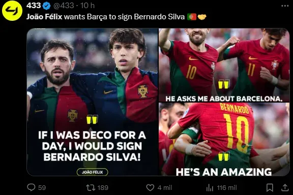 O futuro de João Félix no Barcelona é a grande questão, assim como a chegada de Bernardo Silva, que, segundo o atleta da Catalunha, deseja vestir as cores do gigante espanhol.