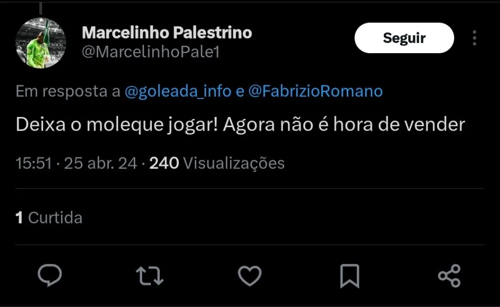 Avaliado em €17 milhões, o atacante possui um único gol pela equipe de Abel Ferreira nesta temporada. Ele atuou em 11 partidas do time, sendo titular em um único duelo, que foi justamente na Libertadores.