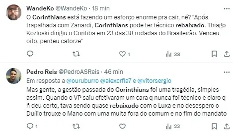 “1. O nome de Antônio Oliveira, português, técnico do Cuiabá ganha força nos bastidores do Corinthians! 2. Corinthians acerta a contratação do Matheuzinho, do Flamengo, por U$4 milhões! Falta apenas definir como será feito o pagamento da primeira parcela.”, informou Benja, na plataforma X.