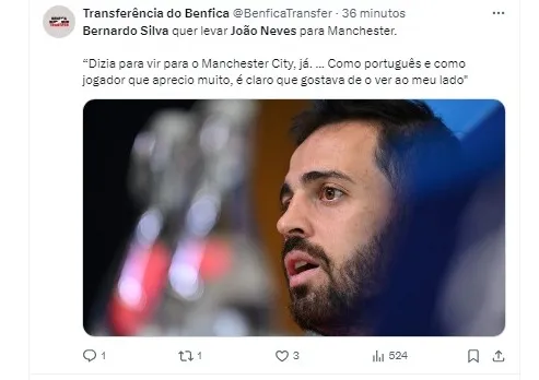 Bernardo Silva destacou as qualidades de João Neves e comentou sobre a dificuldade da situação, dado o grande interesse de vários clubes no jovem talento.